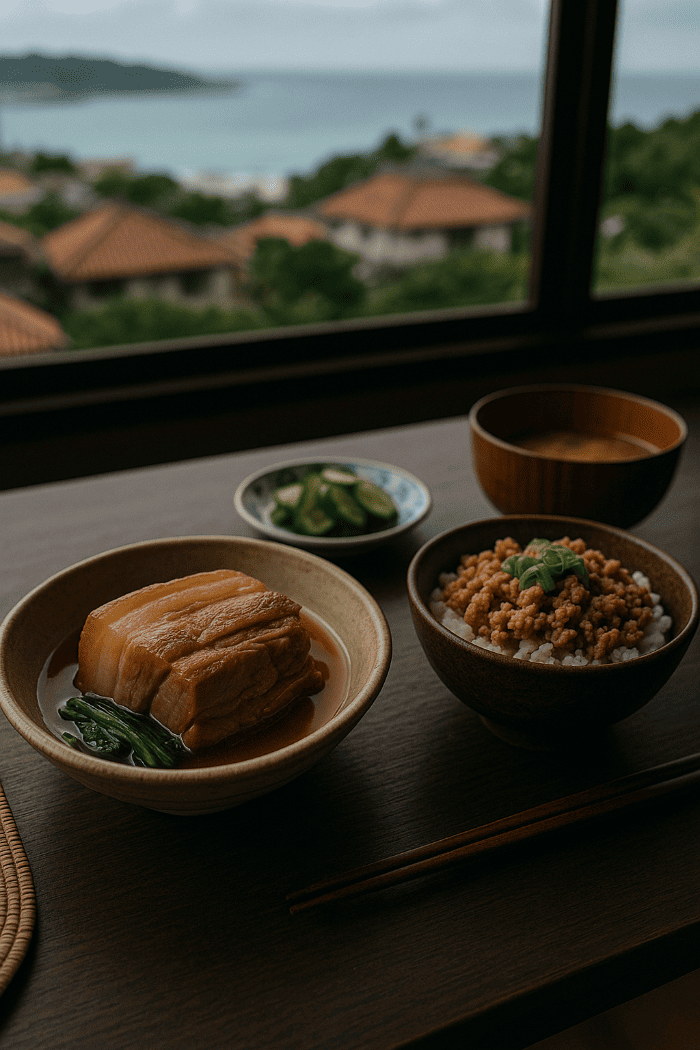 오키나와 전통 요리인 ‘라후테’는 돼지고기를 간장, 미림, 다시로 오랫동안 졸인 요리로