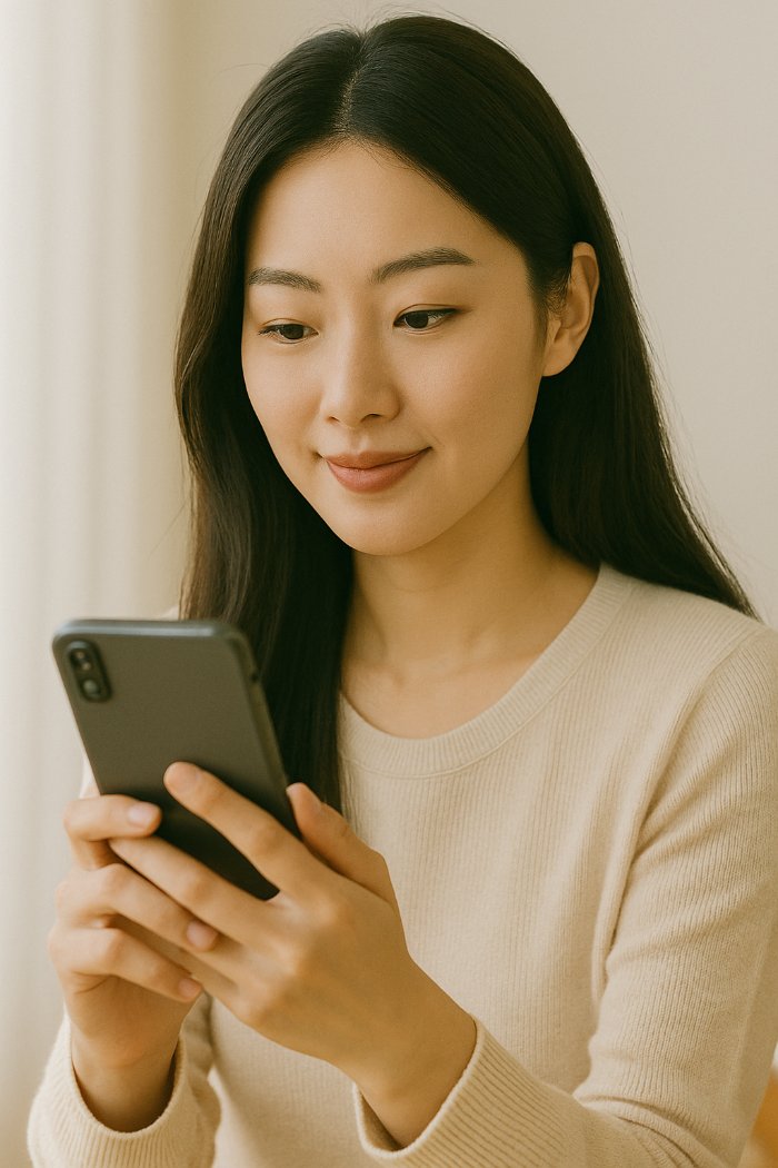 스마트폰을 사용하는 여성 ai생성 이미지