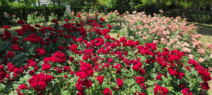 광장의 규모는 꽤 넓어서 한눈에 다 담기 어려울 만큼 다양한 품종의 장미들이 펼쳐져 있고,