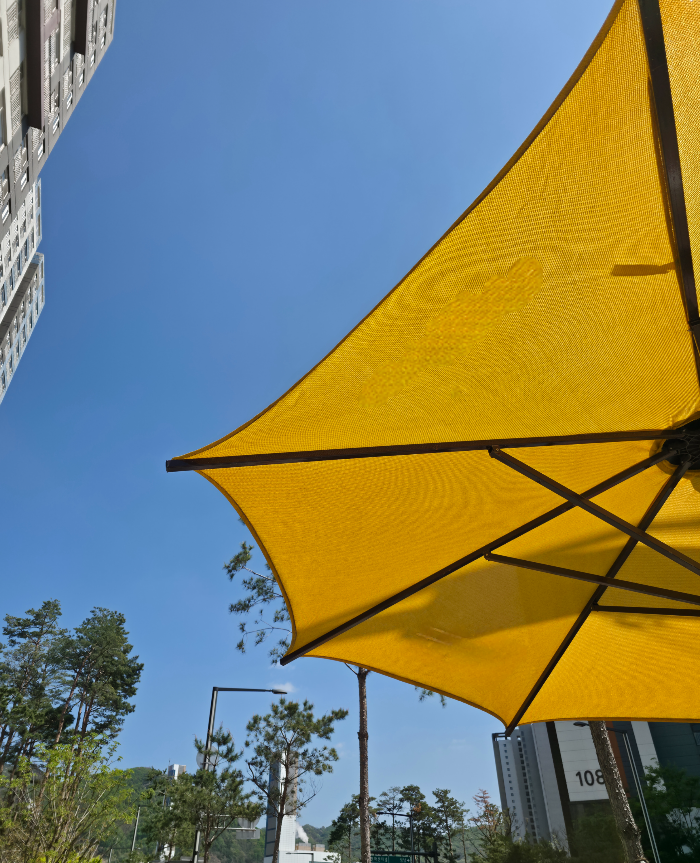 그곳에 세워진 커다란 노란 우산 하나.