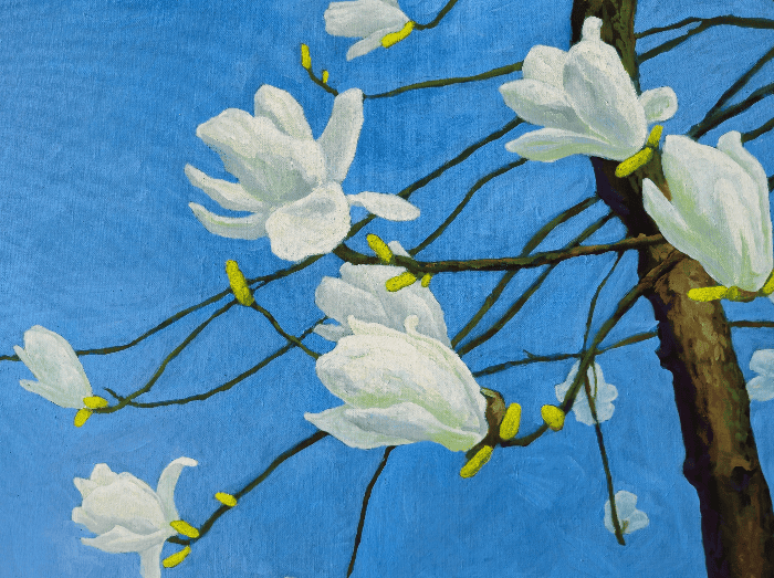 첫 번째 그림은 하늘 아래 피어난 목련의 모습이다.