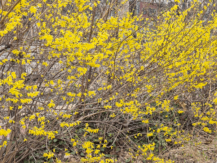지금 이 순간, 성내천 길가에서 새봄을 맞아 피어난 개나리.