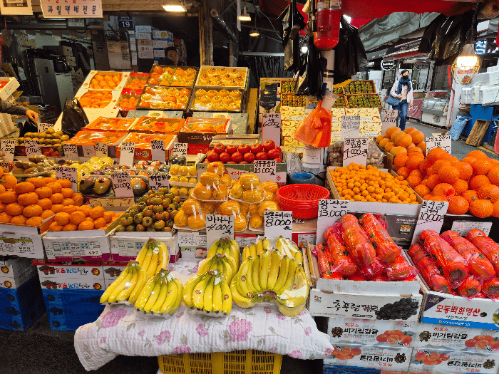 시장 골목을 채운 색색의 파라솔들.