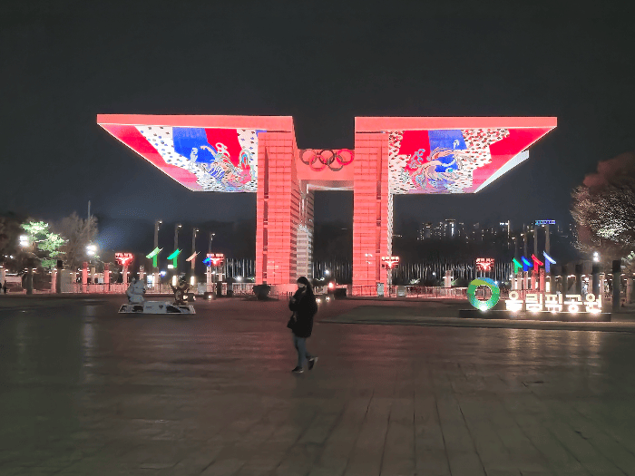 서울 송파구에 위치한 올림픽공원은낮에도 걷기 좋은 곳이지만,밤 산책이 주는 특별한 분위기는 따로 있다.도심 속에 넓게 자리한 이 공원은‘둘레길’을 중심으로 잘 정돈된 산책로가 이어져 있어가볍게 걷기에도 좋고, 음악을 들으며 걷기에도 무리가 없다.특히 야간에는 주요 조형물과 입구, 나무들이 조명으로 밝혀져하루의 고단함을 정리하기에 제격이다.사진 속 장면은 올림픽공원의 대표적인 랜드마크,‘세계평화의 문’을 저녁 산책 중 마주한 순간이다.붉은 조명이 천장을 감싸며그림자처럼 바닥에 떨어지고,멀리서 보이는 무대 쪽에서는작은 야외 공연이나 거리 퍼포먼스가 펼쳐지기도 한다.올림픽공원 밤 산책이 좋은 이유는공간의 크기만큼이나 여유로운 시선과무리 없이 다양한 풍경을 만날 수 있다는 점이다.조용히 걸으며 음악을 듣기도 좋..